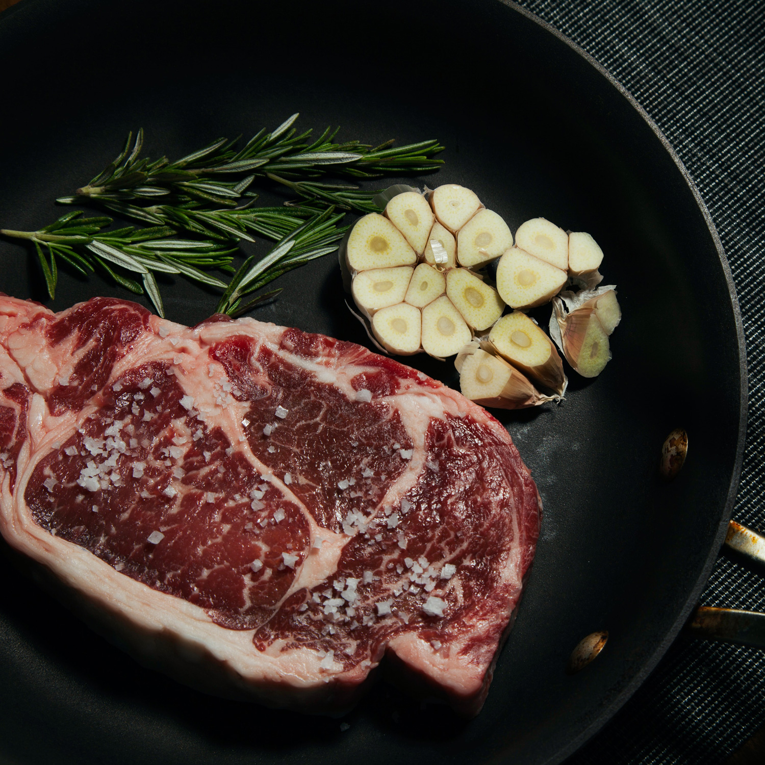 Braten Sie das Fleisch (es sollte Raumtemperatur haben) scharf an. Wir empfehlen eine Minute von jeder Seite. Danach etwas ruhen lassen und im vorgeheizten Ofen bei ca. 80˚C fertig garen, bis die gewünschte Kerntemperatur erreicht ist. Das fertig gegarte Steak lassen Sie am Besten noch fünf Minuten entspannen. Bevor Sie das Steak servieren, noch einmal kurz in heißem Butterschmalz schwenken, dabei zwei bis drei Mal alle 15 Sekunden wenden. Anschließend mit grobem Meersalz würzen.